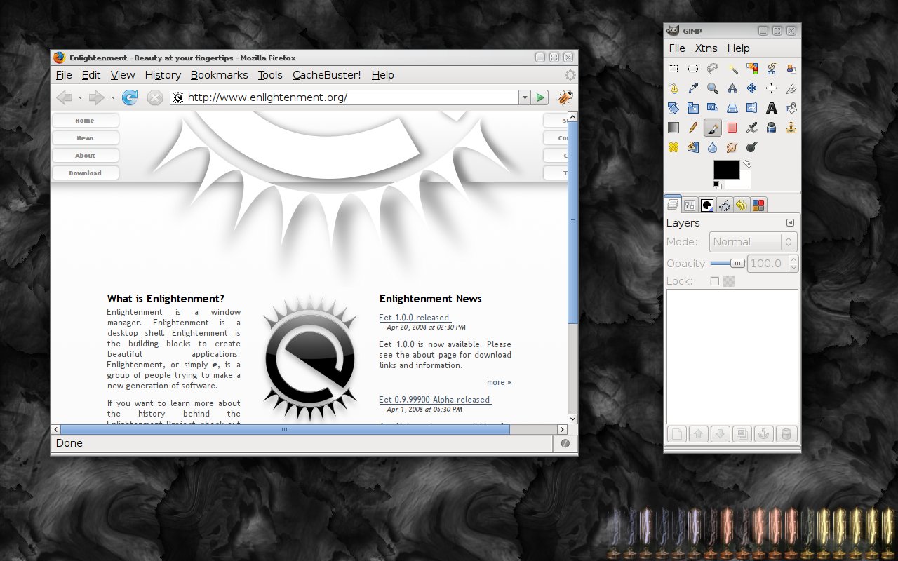 tebsclock is a small gadget for the Enlightenment desktop shell. It does nothing but display the time in a binary and steampunk fashion. It can be resized in any way you want thanks to Edje. Creating a theme for this gadget should be fairly easy.